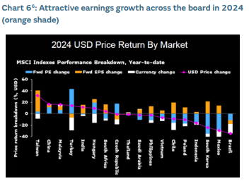 Still, significant questions remain. How will a potential Trump 2.0 presidency shape growth, inflation, trade, and geopolitics? Can China tackle its protracted battle with a high savings rate and thus excessive reliance on investment and exports. Are we likely to see credible intentions from policymakers to break free from the iron grip of overcapacity, excessive investment, and disinflation? And what degree of fiscal and monetary policy desynchronisation can markets expect between Developed and Emerging economies?