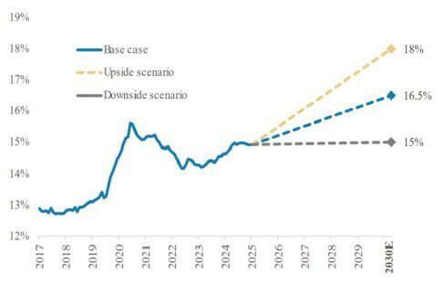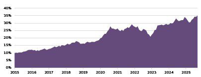 Chart 10[6]: Mag 7% of US market cap (S&P 500)