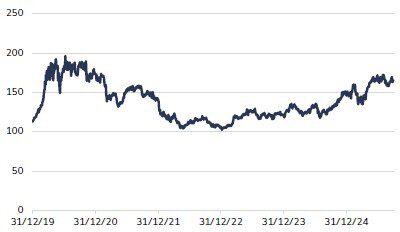 We have no doubt that AI will be transformative, particularly in those industries with iterative processes such as pharmaceuticals and robotics. The AI winners and losers however are yet to be determined and thus AI as an equity valuation factor is still somewhat speculative. The noise of AI has largely drowned out much larger sectors. For example, corporate spending on AI reached $252 billion in 2024 (source: Stanford University) but this is a pittance relative to the $2 trillion invested in clean energy technologies and infrastructure (source: International Energy Agency). Perhaps more notably, clean energy investment is now nearly double that of fossil fuels demonstrating that the energy transition is now an unstoppable force.