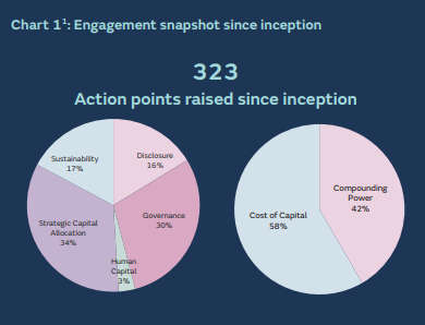 We are particularly excited about the inbuilt latency that exists in the portfolio today. We were successful with 67 Engagement Action Points since inception with each having an impact on improving the Compounding Power or reducing the market implied Cost of Capital for their respective business.