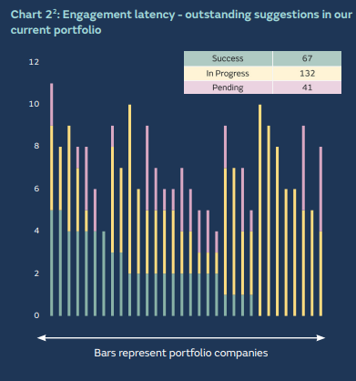 Turning back to this quarter, we have seen some important engagement outcomes materialising to drive portfolio returns. Our engagement process with companies is typically a 36-month process and begins prior to our point of initial investment. We believe that each incremental step compounds to help drive the wider company transformation. We have outlined some highlights below: